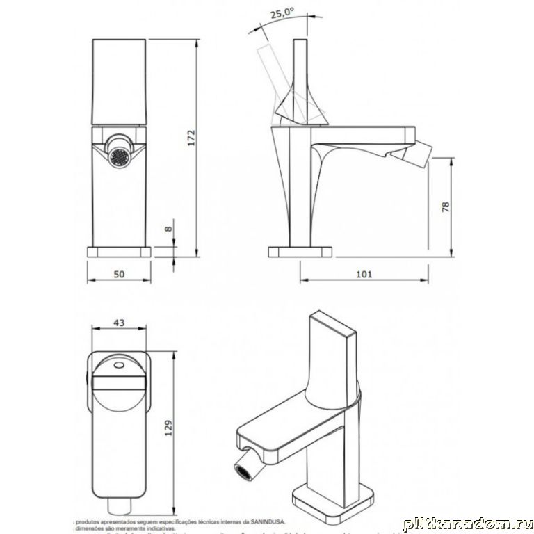 Sanindusa Line 42 Смеситель Cromo-Branco 555040110 для биде, без донного клапана
