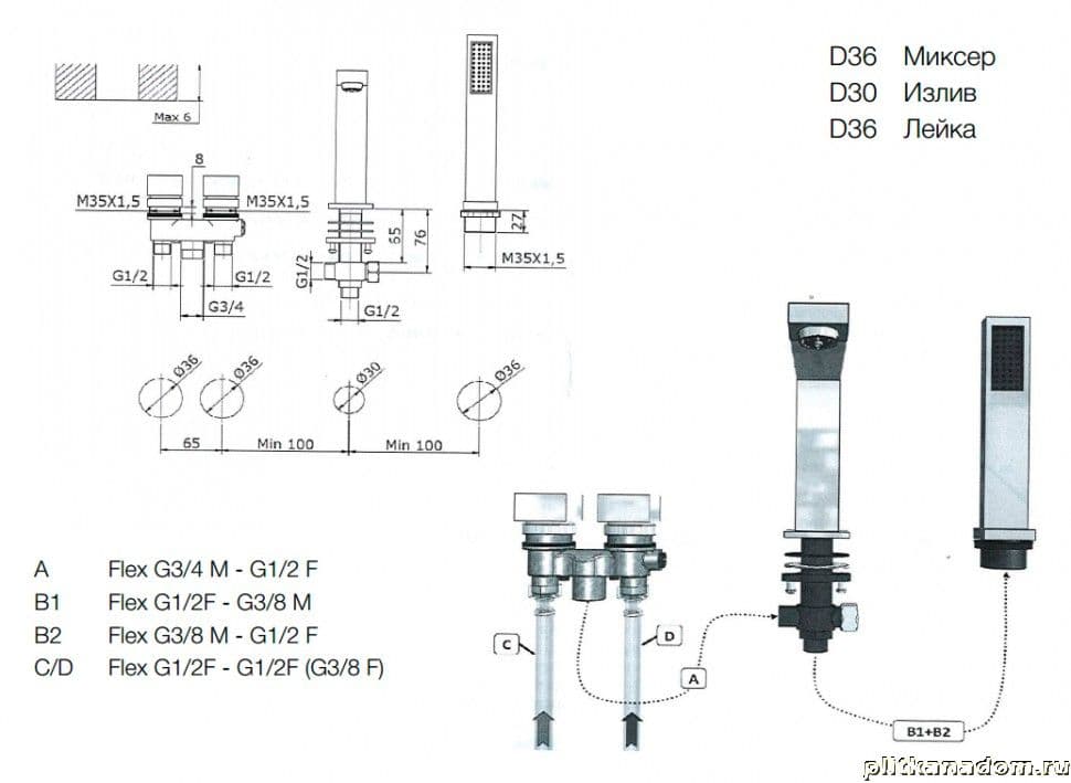Vega Quadro Lux 91А0305022 Смеситель на борт ванны (4 элемента)
