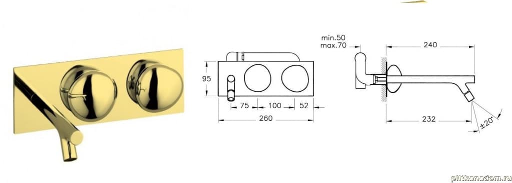 Vitra Istanbul A4188323EXP Смеситель для биде встраиваемый