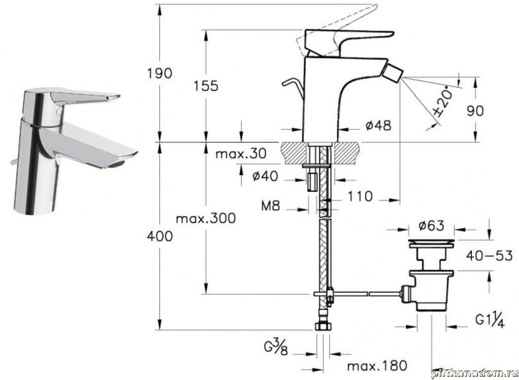 Vitra Solid S A42441EXP Смеситель для раковины (с донным клапаном)