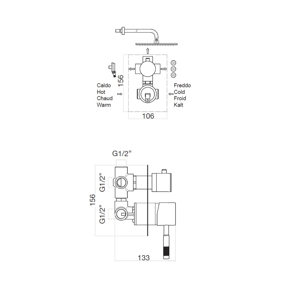Смеситель для душа встраиваемый Webert Rimini RI880601010, золото