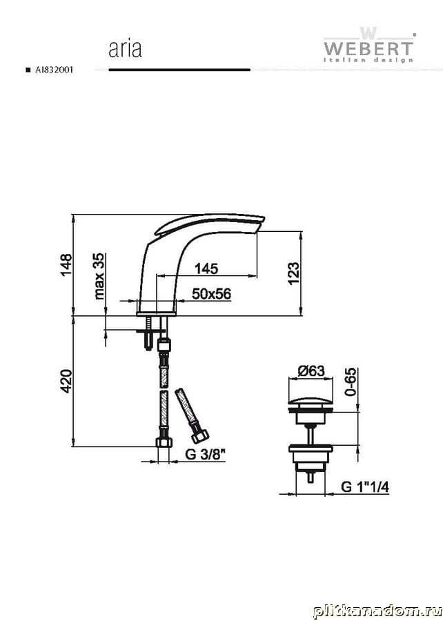 Webert Aria AI 832001 Смеситель для раковины без донного клапана, белый с ручкой Arenaria