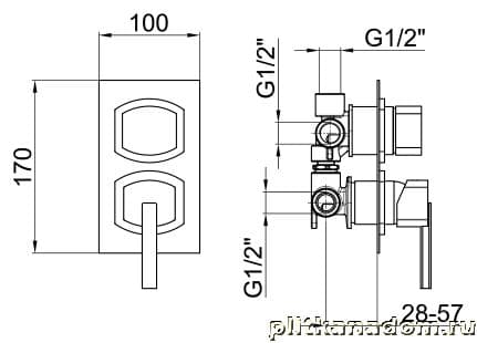 Webert Azeta AZ880601 Смеситель для душа, с ответной частью в составе, с девиатоором на 3 потока, хром