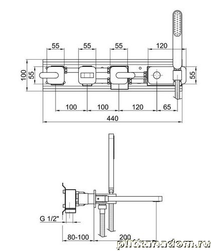 Webert Living LV720901560 Смеситель для ванны встраиваемый в стену на 2-потока