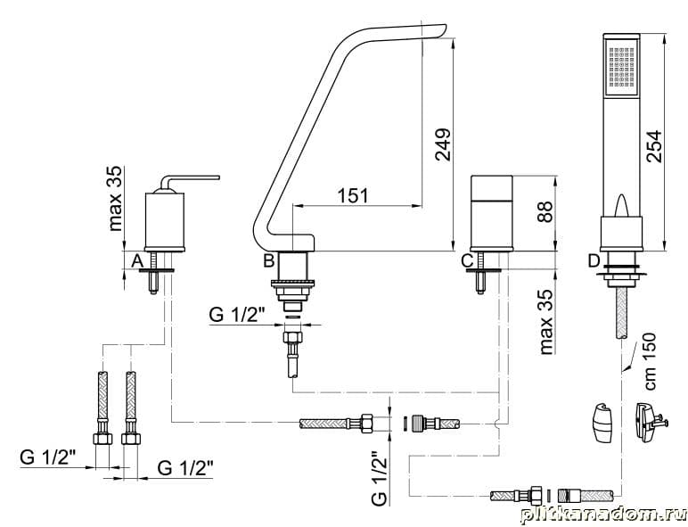 Webert Wolo WO850701 Смеситель на борт ванны на 4 отверстия, черный
