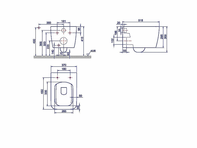 Boheme Zen 967-2 Подвесной унитаз, с функцией Биде, Глянец Белый (без крышки)