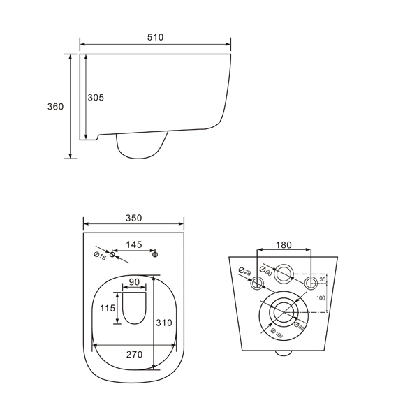 Comforty Унитаз подвесной 102 безободковый, сиденье дюропласт softclose тонкое, быстросъёмное