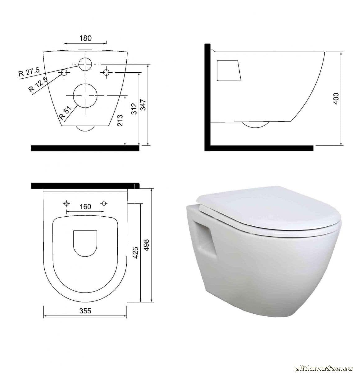 Creavit Унитаз подвесной с биде TР325