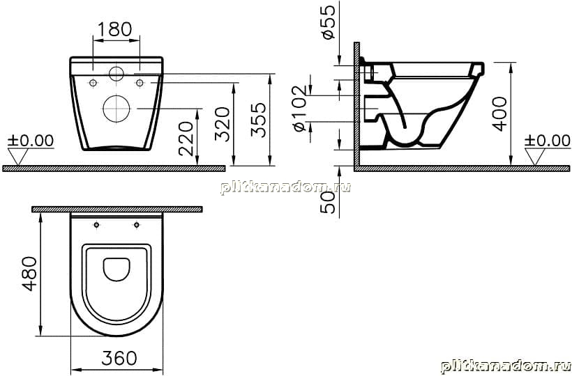 Vitra S50 Чаша подвесного унитаза 5320B003-0075 (48 см)