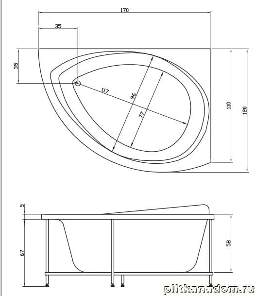 Акватика Альтернатива Акриловая ванна, комплектация Basic 170х120
