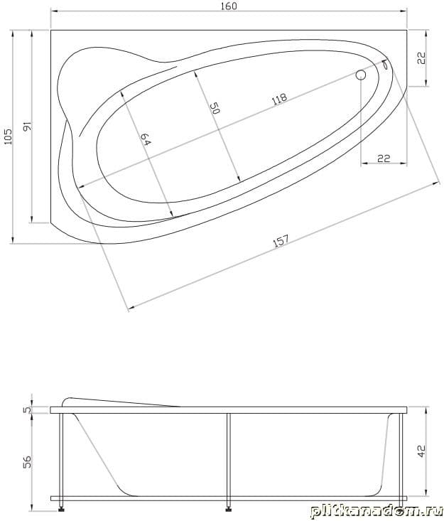 Акватика Логика Акриловая ванна, комплектация Basic 160х105