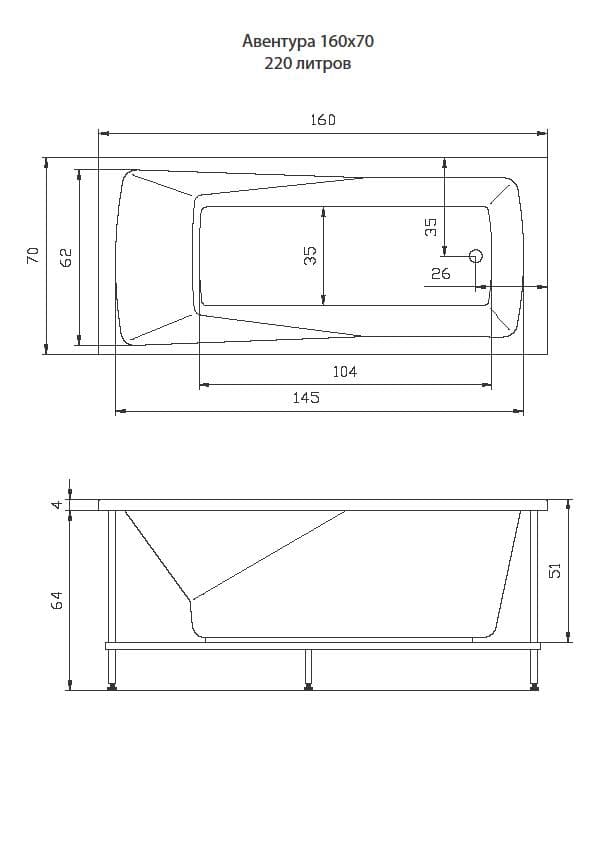 Ванна акриловая Акватика Авентура 160*70*67 см