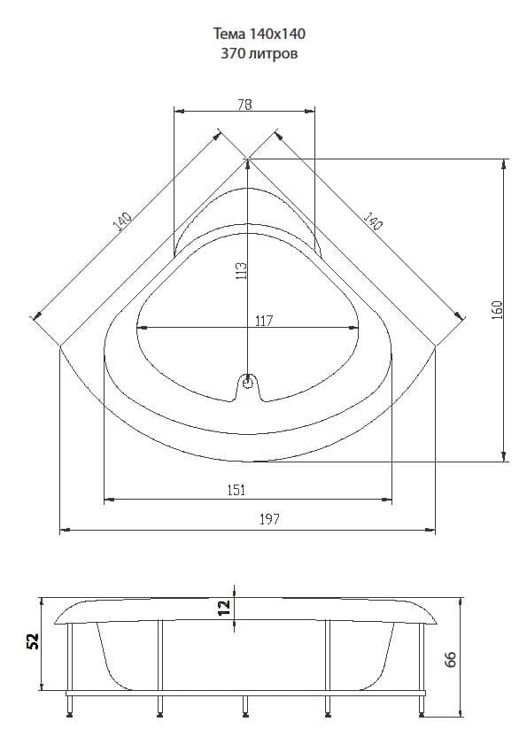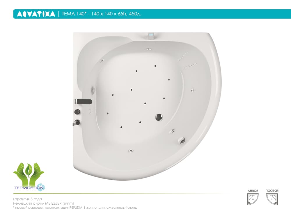 Ванна акриловая Акватика Тема 140*140*65 см
