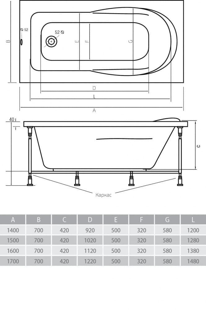 Акриловая ванна ALPEN Karmenta 170