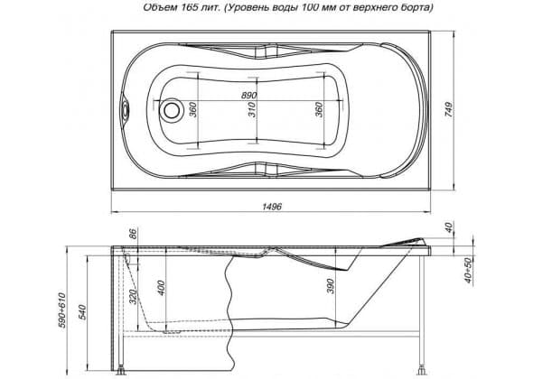 Акриловая ванна Aquanet Rosa 150x75 (каркас + панель)