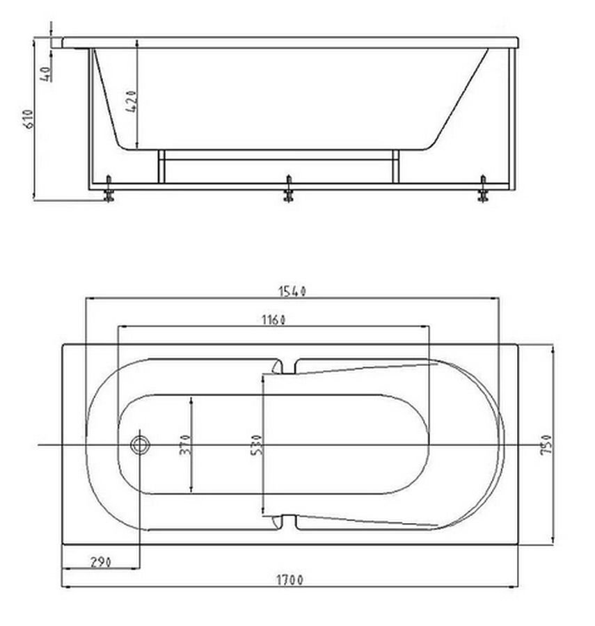 Aquatek Лея Ванна Лея 170 пустая с фр.экраном (слив справа)
