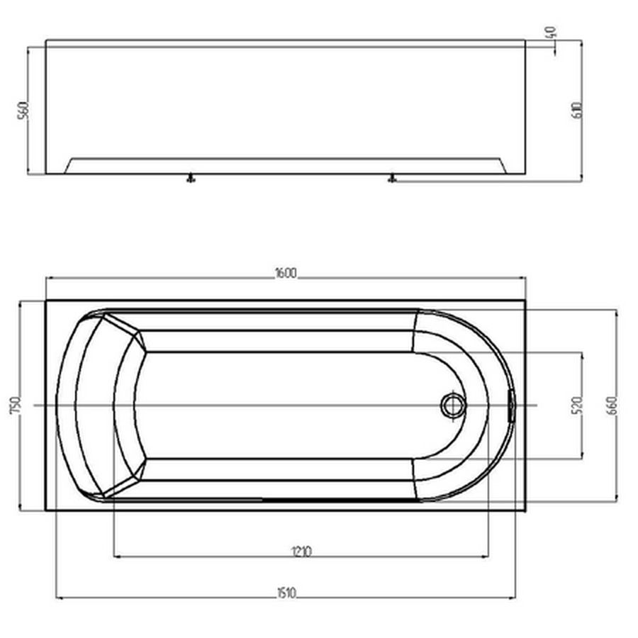 Aquatek Ника Ванна Ника 160x75 без панелей, каркаса и слива-пер.
