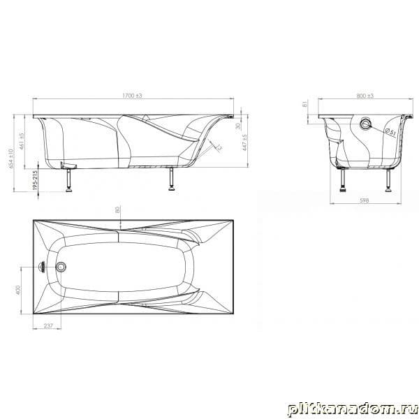 Astra-Form Вега Люкс Ванна из литого мрамора 170х80 Цвета RAL