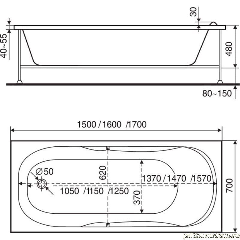 BAS Мальдива Ванна акриловая 160х70х43