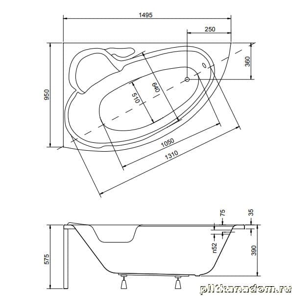 Besco Bianka Акриловая ванна 150x95 P