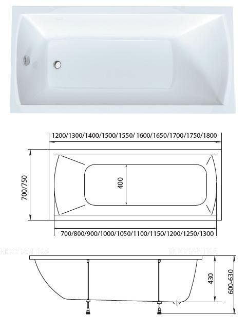 Акриловая ванна Creto Modalia 180х75 см 9-18075