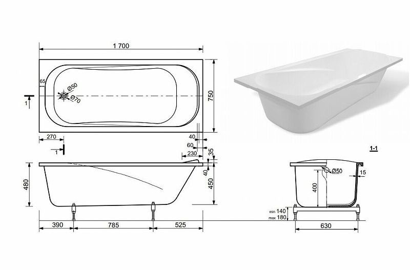 Ванна из литьевого мрамора 170х75 см Creto Nova 23-1113