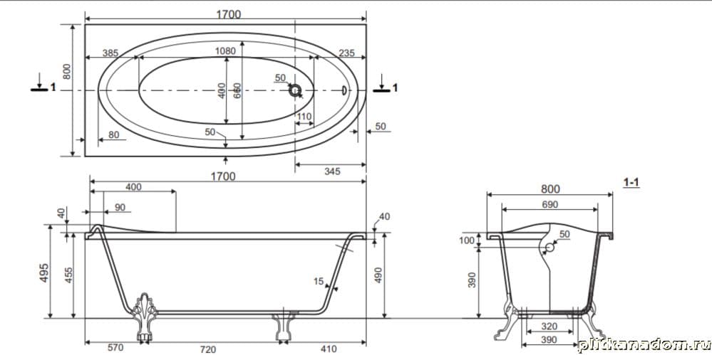 Эстет Венеция ФР-00001848 Ванна, левая 170х80