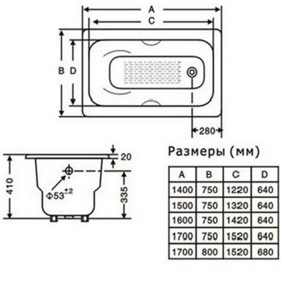 Goldman Donni Ванна чугунная без ножек, с отверстиями под ручки 150х75х42
