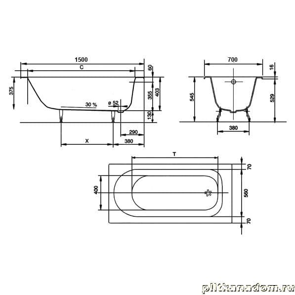 Jacob Delafon Soissons E2941-00 ванна 150х70