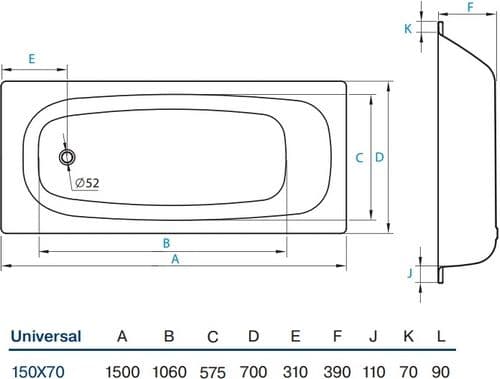 Koller Pool Universal Ванна 150x70, с anti-slip