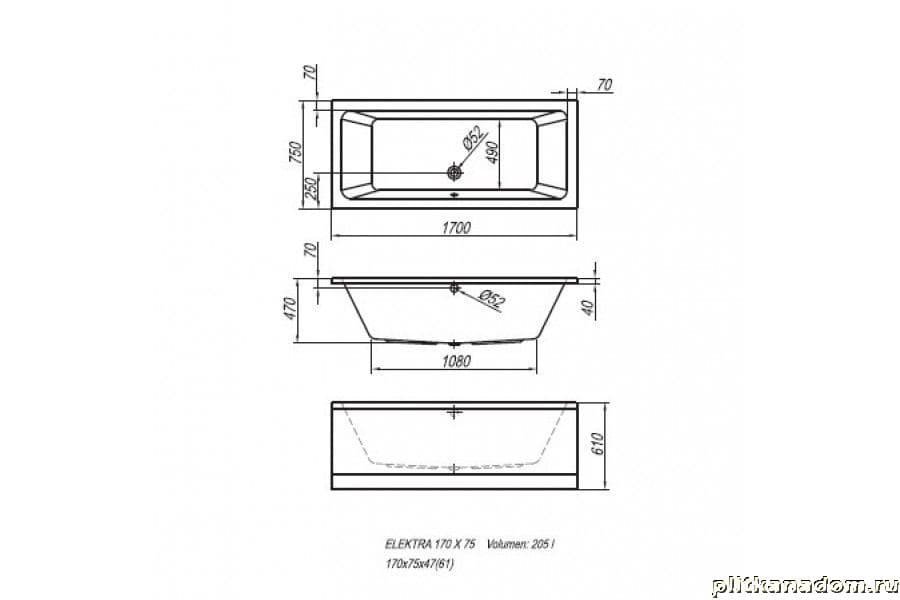 Kolpa San Elektra Акриловая ванна, комплектация Luxus 170х75