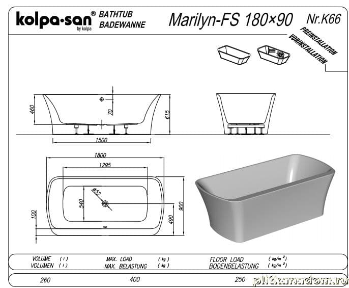 Kolpa San Marilyn FS Акриловая ванна 180x90
