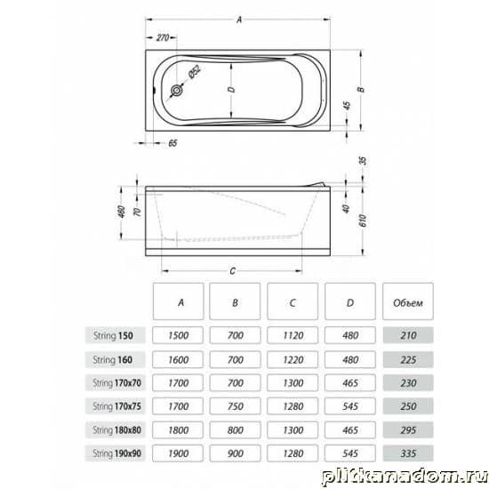 Kolpa San String Акриловая ванна, комплектация Special 180x80