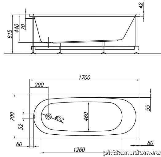 Kolpa San Tamia Акриловая ванна, комплектация Standart 170x70