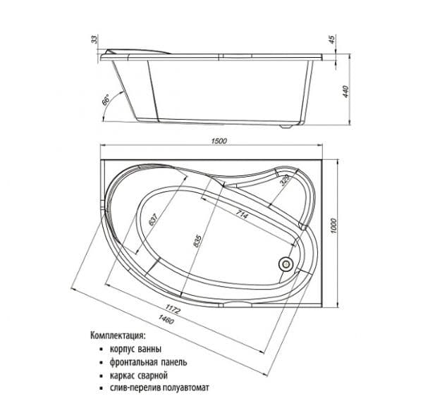 Ялта MIRSANT Premium ванна 150*100 левая, каркас с установочным комплектом, фронтальная панель