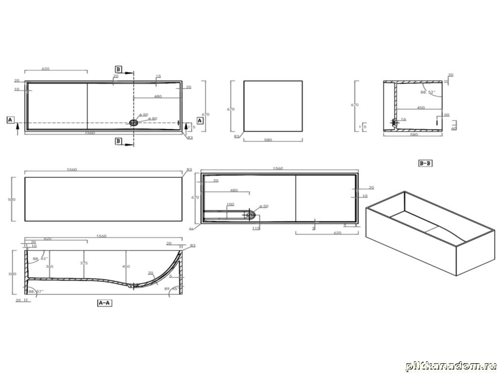 NS Bath NSB-15670G Ванна 156х67х58