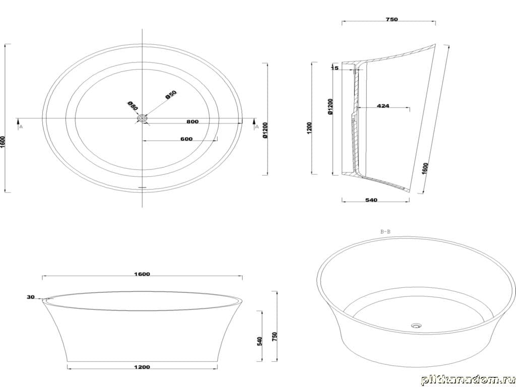 NS Bath NSB-16000M Ванна 160х75