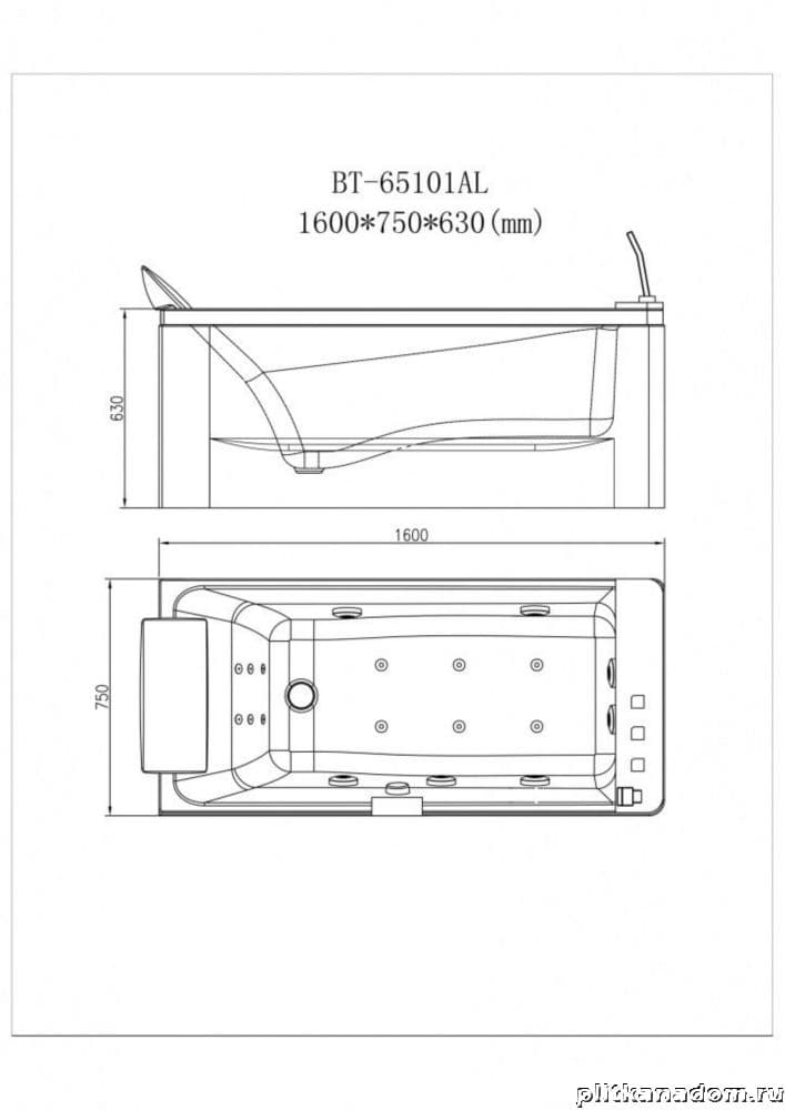 Orans BT-65101AR Акриловая ванна с гидромассажем 160х75х63