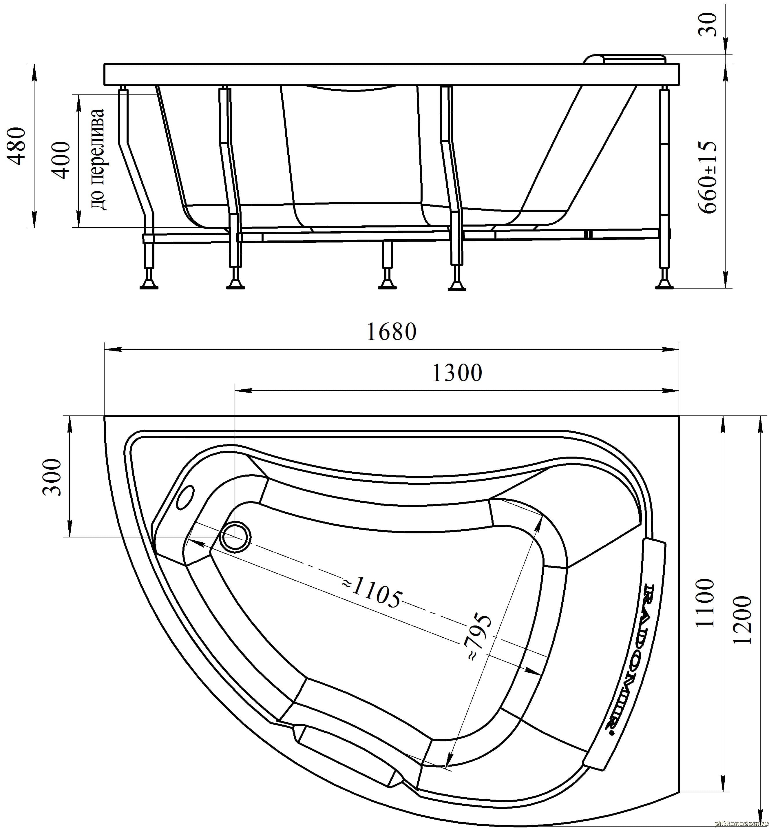 Radomir Альбена Ванна акриловая 168х120 левое исполнение, рама-подставка, подголовник