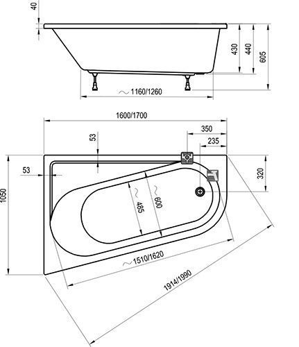 Ravak Chrome Ванна акриловая правая 160х105