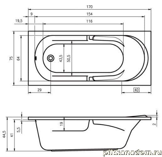 Riho Future BC2800500000000 Ванна 170х75х44,5
