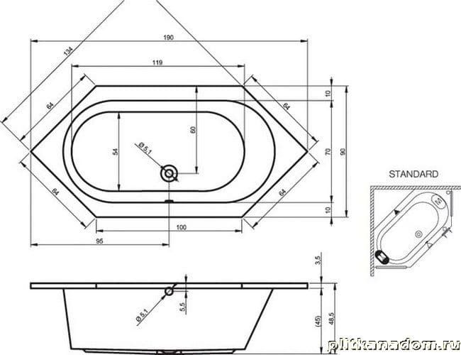 Riho Kansas BA9700500000000 Ванна 190х90х48,5