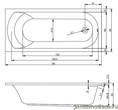 Riho Miami BB6400500000000 Ванна 180х80х43