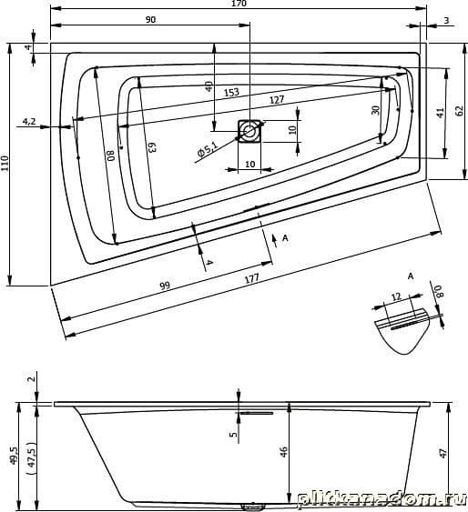 Riho Still Smart BR0400500K00130 Акриловая ванна L 170x110, светодиоды и подголовник с размещением справа