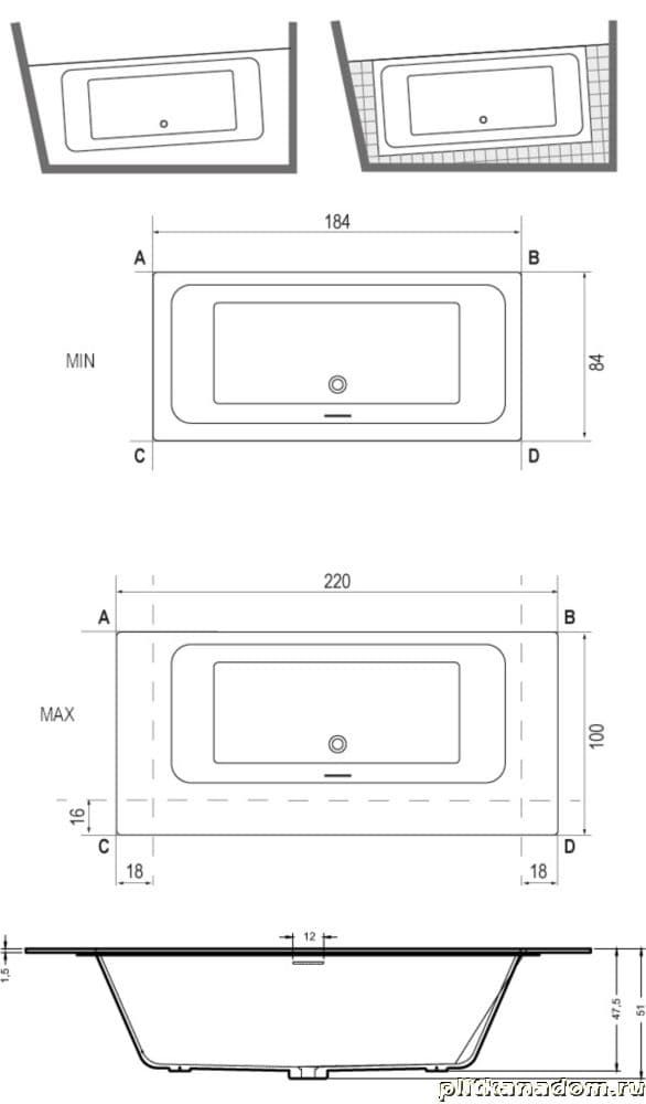 Riho Zamora BS4700500000000 Ванна 220х100