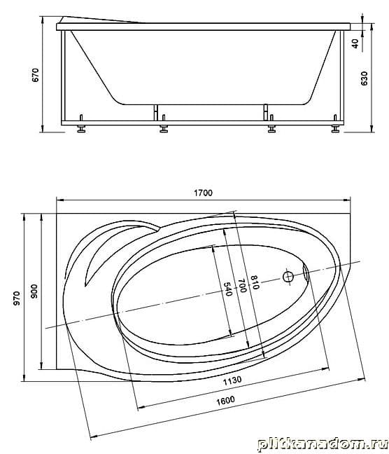 Акватек Бетта Акриловая ванная асимметричная левая 170х97