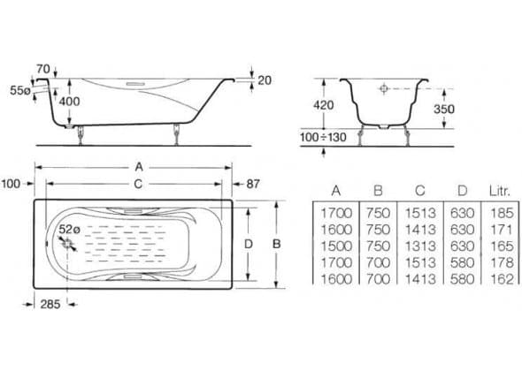 Чугунная ванна Roca Malibu 160х70 2334G0000
