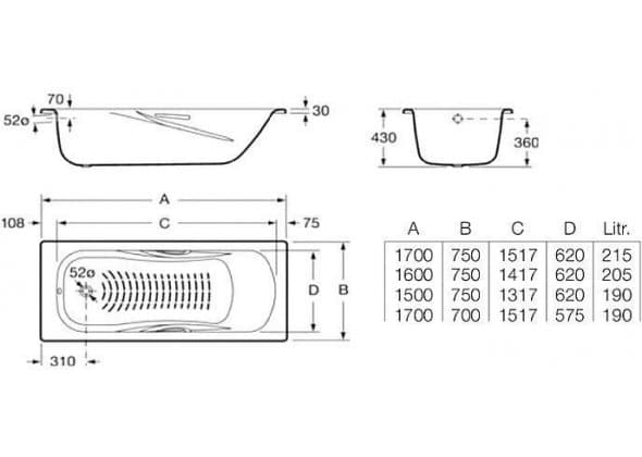 Стальная ванна Roca Princess 160X75 2203E0000
