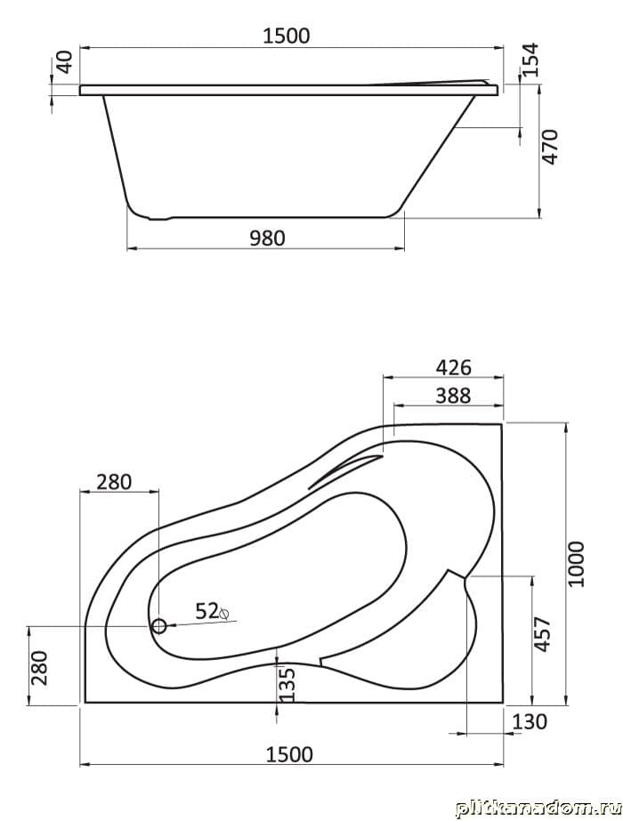 Santek Ибица 1WH112034 Акриловая ванна, асимметричная 150х100 левосторонняя