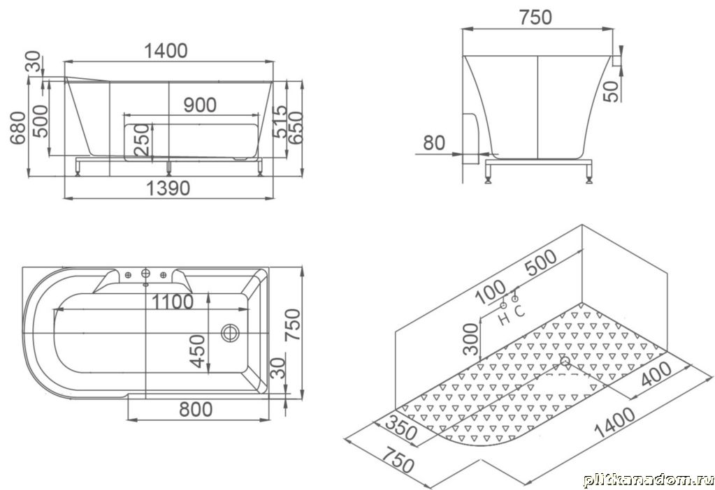 SSWW M628 L Акриловая ванна 150x75